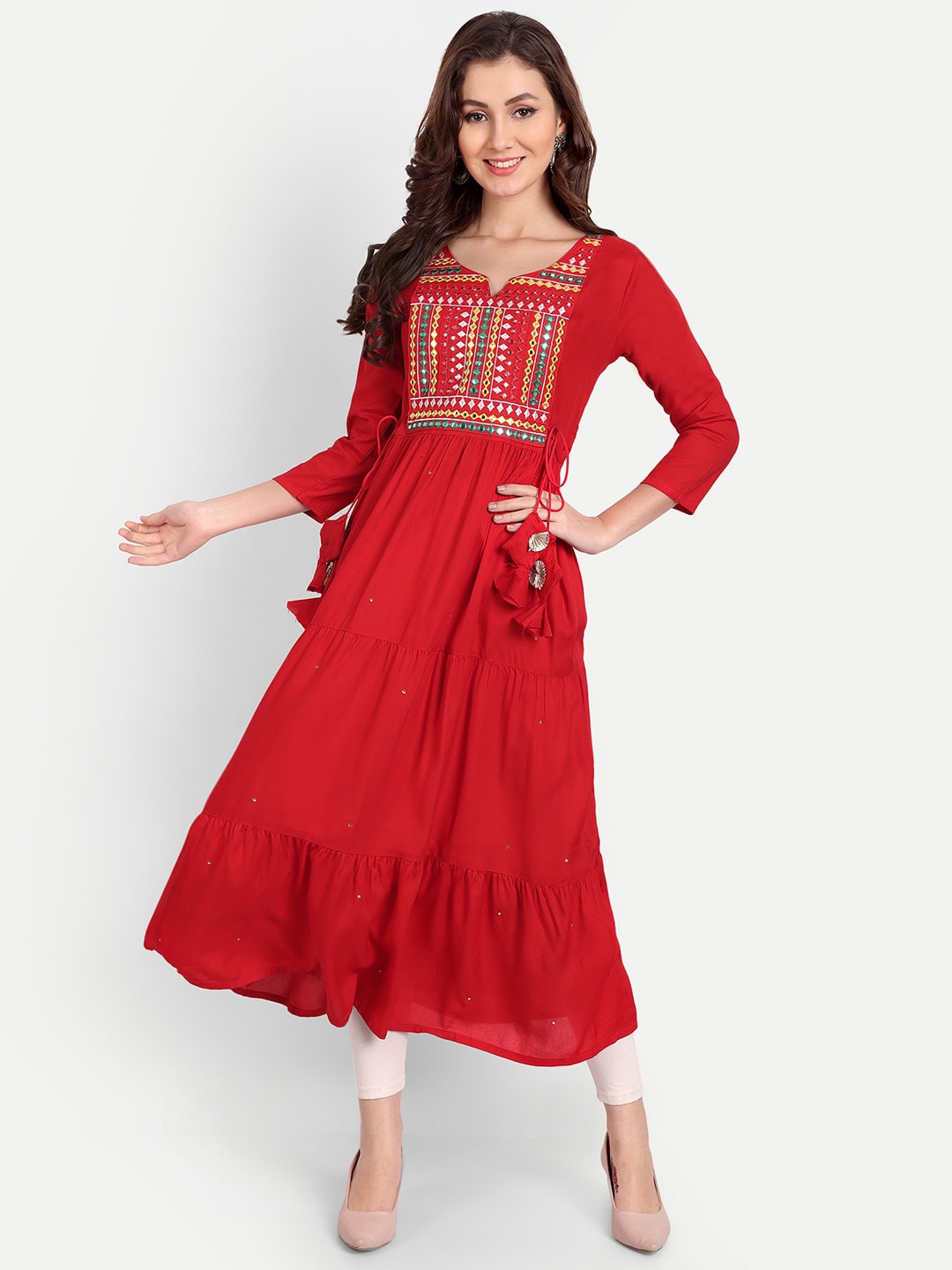 Embellished Mirror Work Rayon A-line Kurta Gown