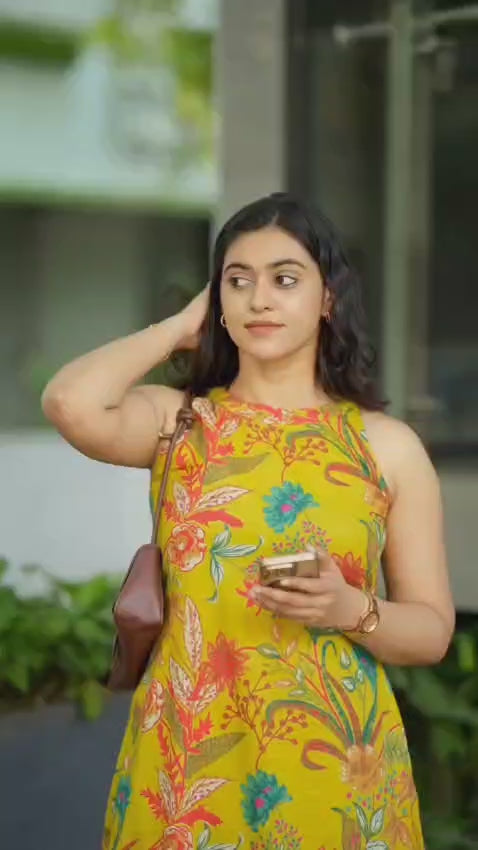 Crafted from 100% pure cotton, this two-piece set features a contemporary halterneck kurta adorned with charming elephant and umbrella prints, exuding a light-hearted ethnic vibe. The straight-cut kurta is thoughtfully paired with easy-fit elasticated pants for all-day comfort and flow.